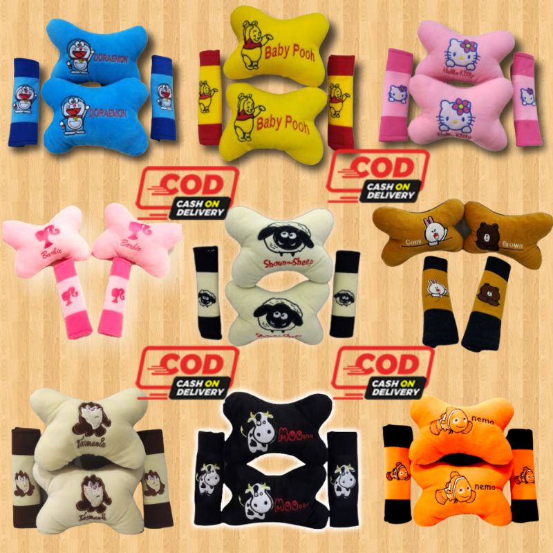 Bantal Mobil 2in1 Set Karakter Cartoon Kartun Set 2in1 Mobil Bantal Karakter Headrest Car