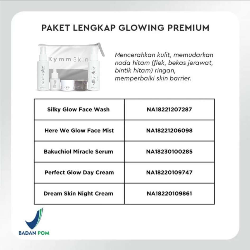 PAKET GLOWING PREMIUM KYMMSKIN (5PCS + POUCH) | MENCERAHKAN, GLOWING, MENGATASI FLEK HITAM