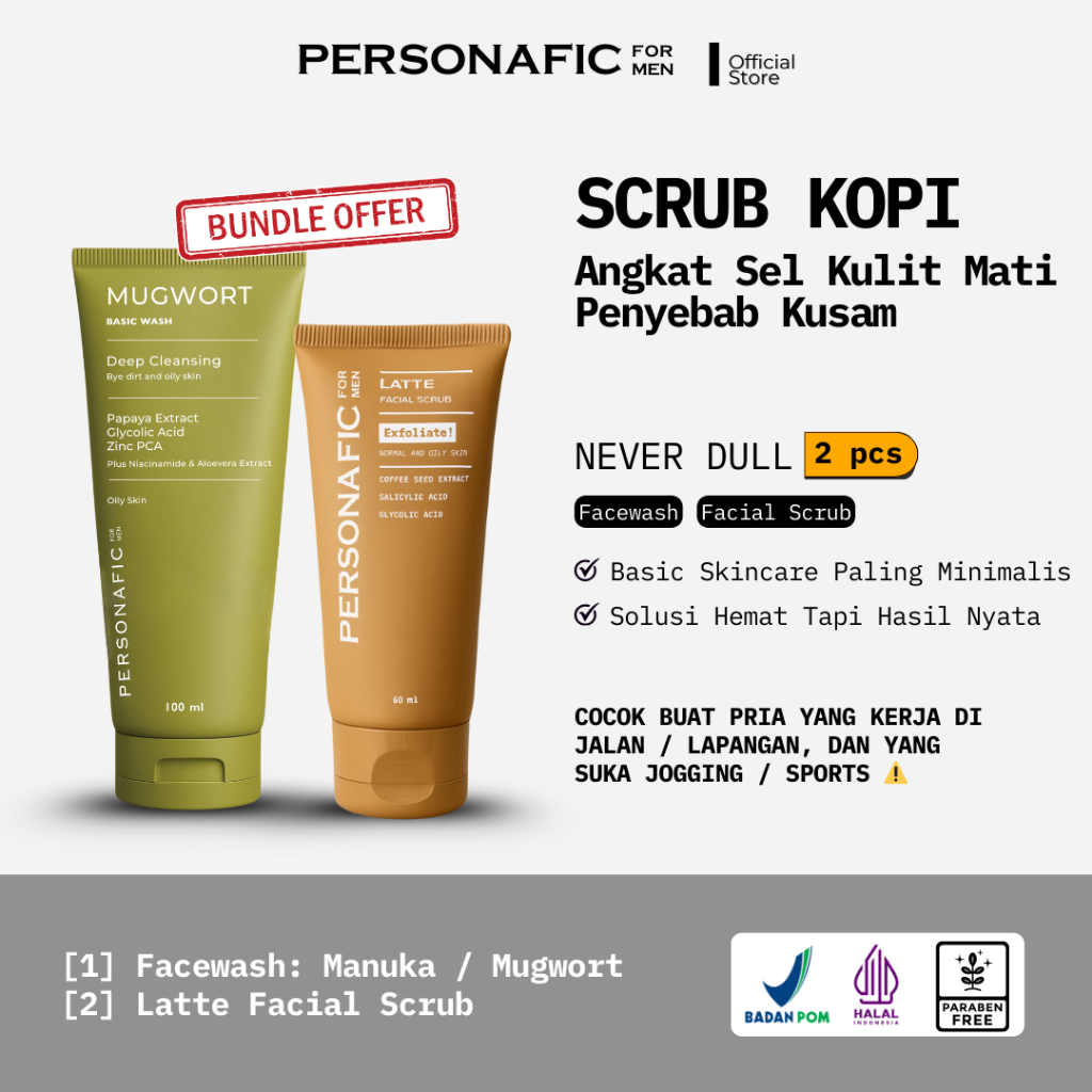 PERSONAFIC Never Dull Pack - Paket Skincare Pria Anti Kusam - Facewash dan Scrub