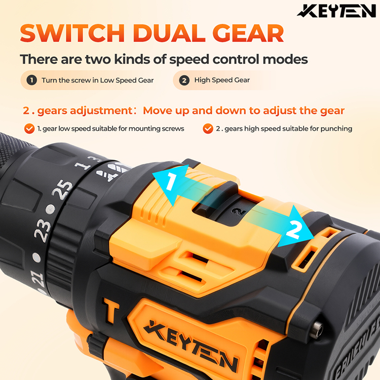 KEYTEN Bor Dampak Nirkabel Set Brushless Cordless Impact Drill Bor Baterai Alat Listrik Sekrup Nirkabel