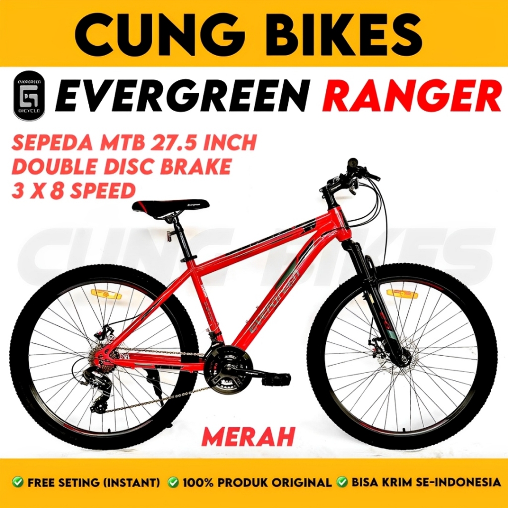 Sepeda Gunung MTB 27.5 Inch Evergreen Ranger 545 | 24 Speed Shimano Double Disc Brake Premium