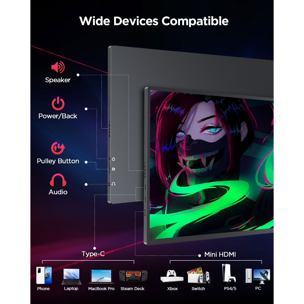 UPERFECT Portable Monitor 16 inch 2K 120Hz 25601600 400 External Display LCD Type C HDMI IPS Gaming Monitor for laptop PS3/4/5