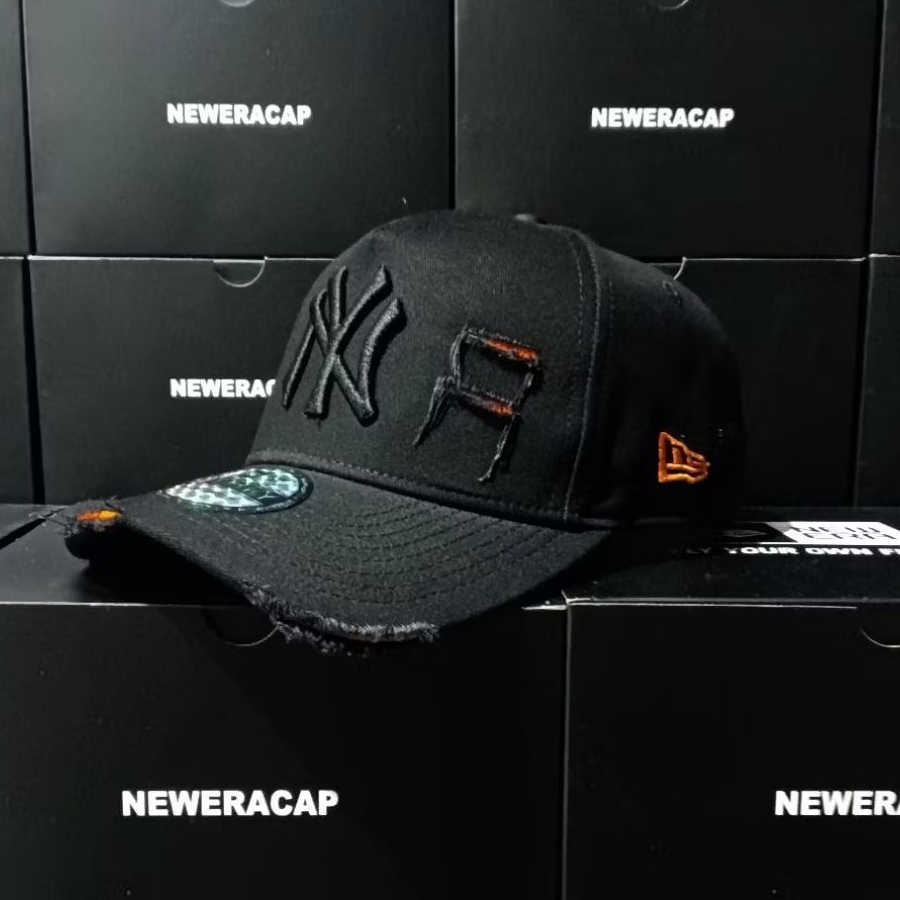 Topi Premium Katun Bordir Timbul NY Black Damage