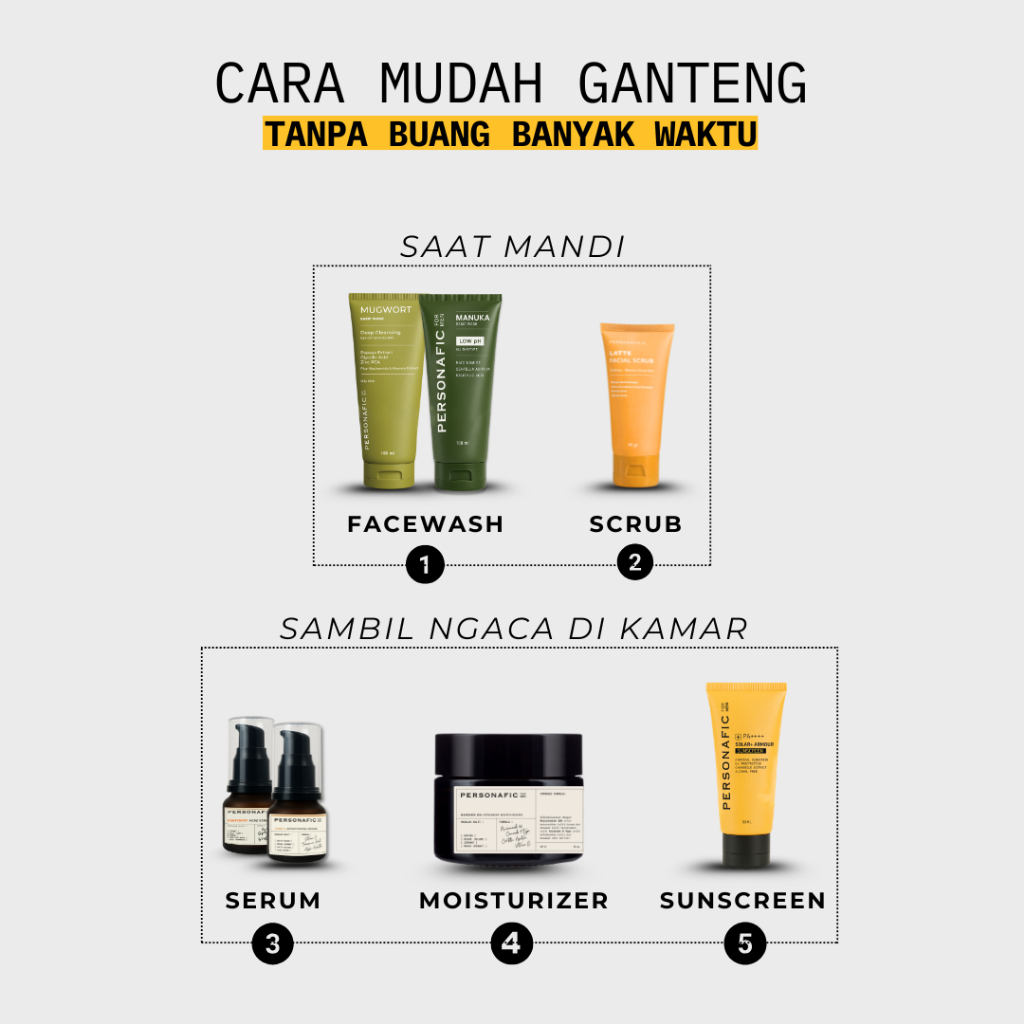 PERSONAFIC Fundamental Complete 5-in-1 Paket Perawatan Wajah Pria Lengkap (Face Wash Scrub Serum Moisturizer Sunscreen)