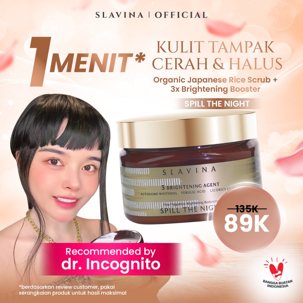 SLAVINA Body Scrub Spill The Night Organic Rice | lulur mengangkat sel kulit mati mencerahkan kulit