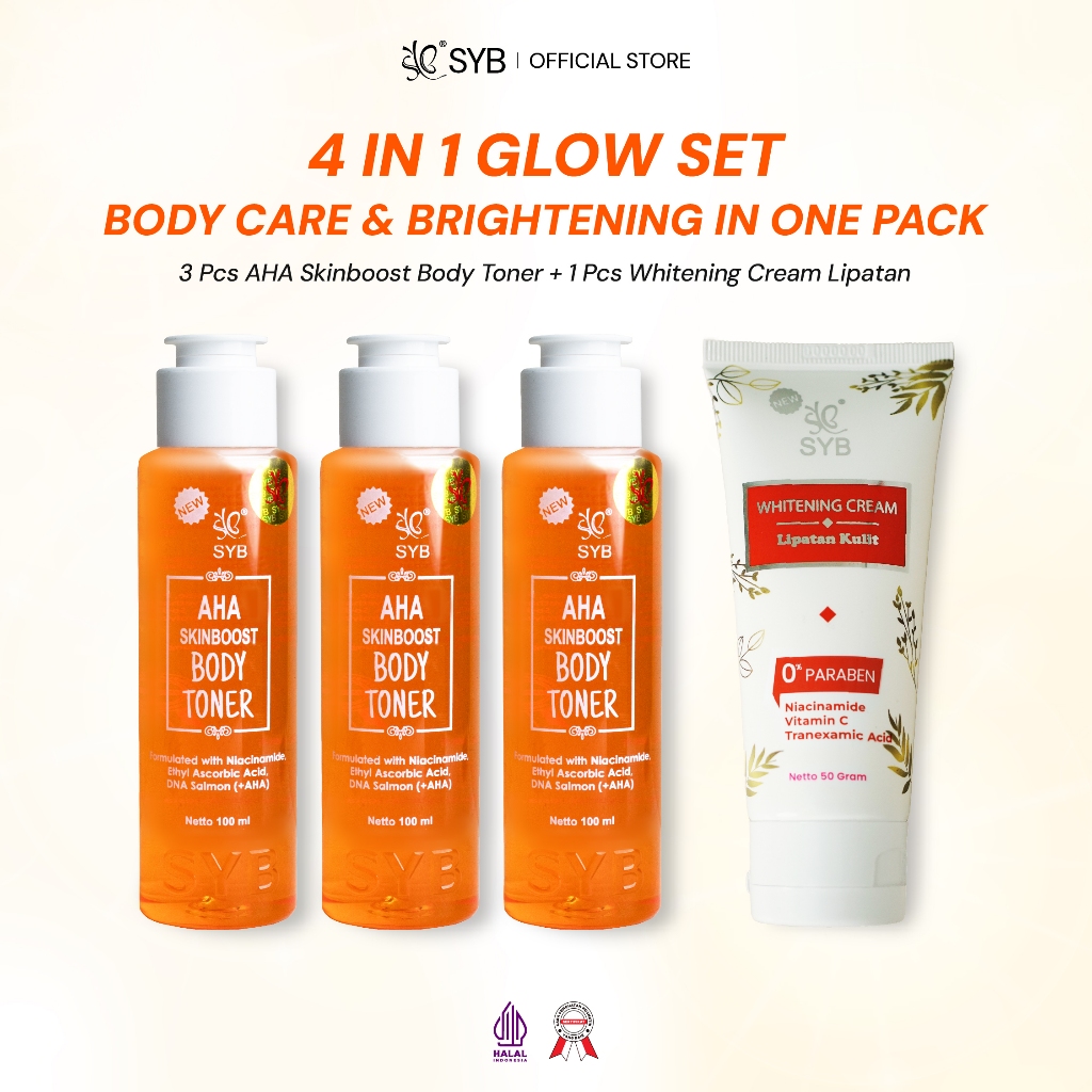 SYB BUNDLING 4IN1 (3PCS NEW SYB AHA SKINBOOST BODY TONER DNA SALMON + 1PCS SYB WHITENING CREAM LIPATAN KULIT)