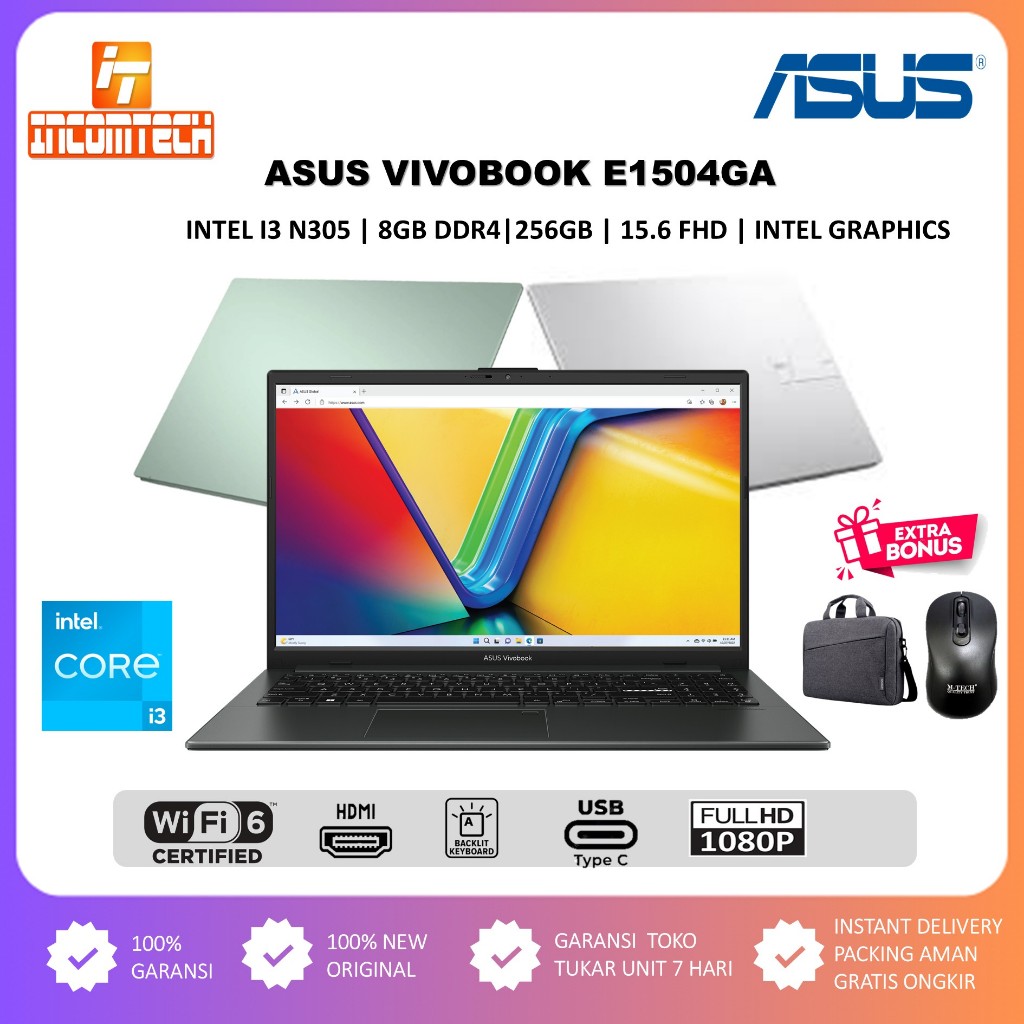 Laptop Asus Vivobook GO 15 E1504GA Intel i3 N305 8GB 256GB SSD NVME 15.6 FHD BL FP WIN11HOMEi