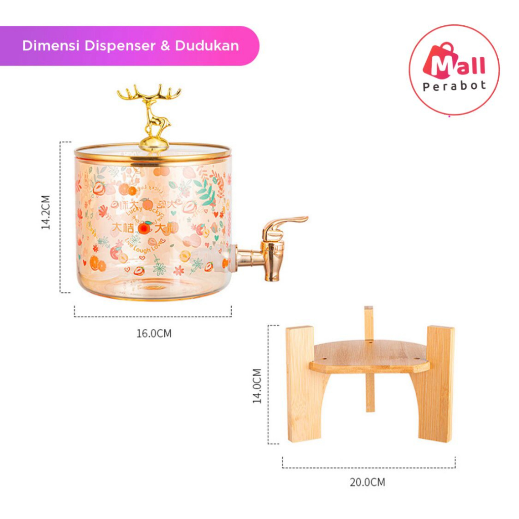 Mall Perabot Dispenser Air Kaca Ketel Air Dingin Kaca dengan Tatakan Kayu Tempat Minuman Es Jus 3.6L