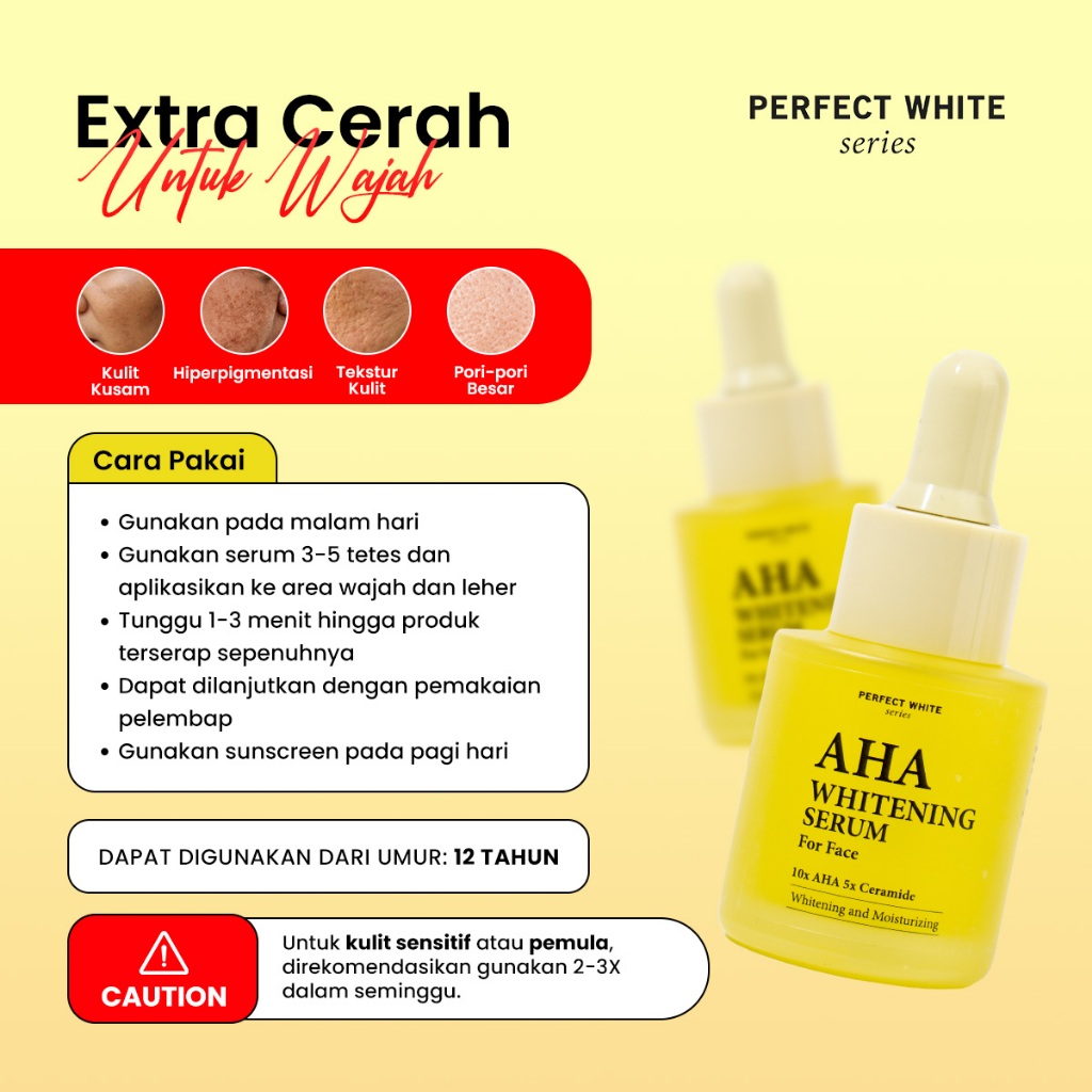 SERUM WAJAH PERFECT WHITE AHA Whitening Serum for Fe | 10X AHA 5X Ceramide | Mencerahkan Eksfoliasi Wajah