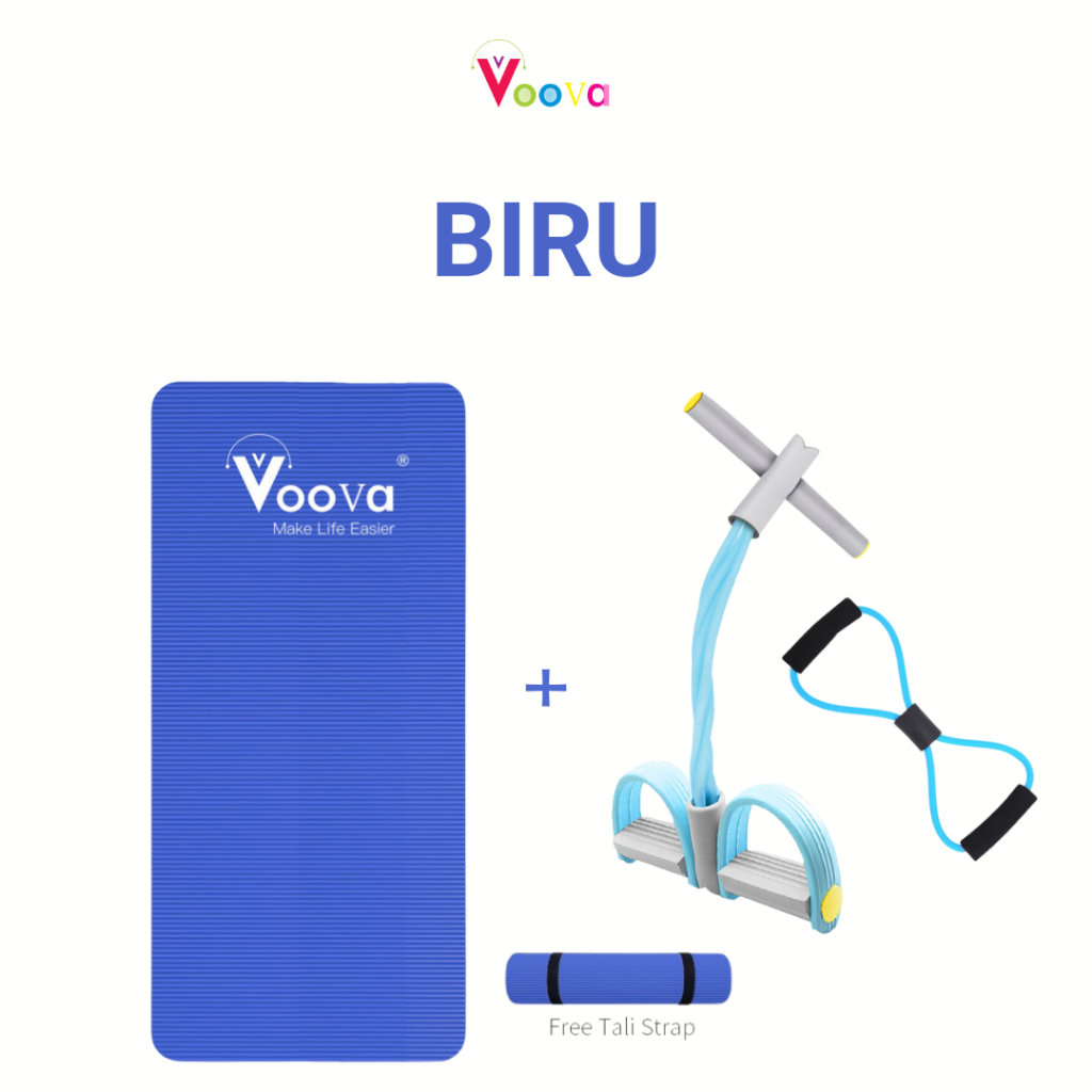 VOOVA 3 IN 1 Set Olahraga/ Set Yoga/ Paket Lengkap Alat Olahraga/ Matras dengan Tummy Trimmer dan Tali Yoga Elastis Nyam