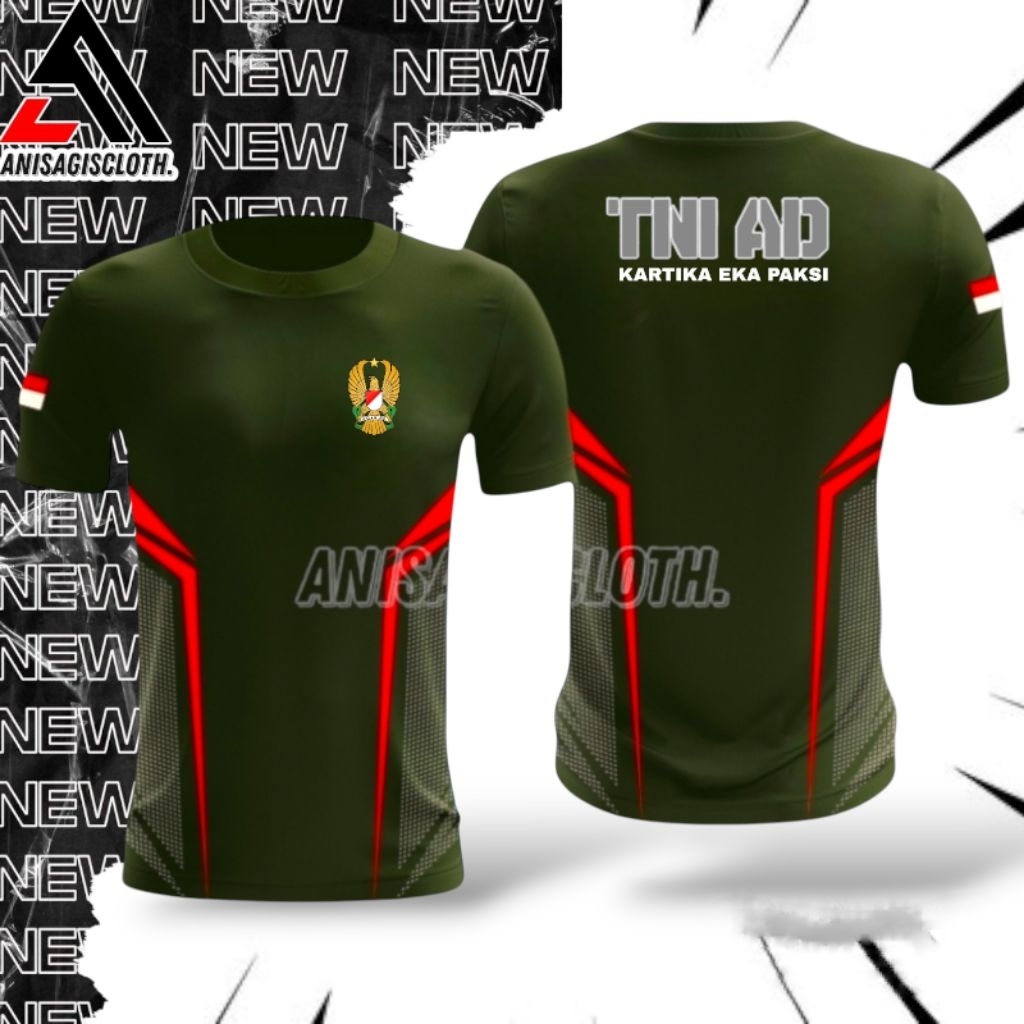 Kaos Jersey Olahraga TNI AD New Motif Sablon Pinggir Terbaru