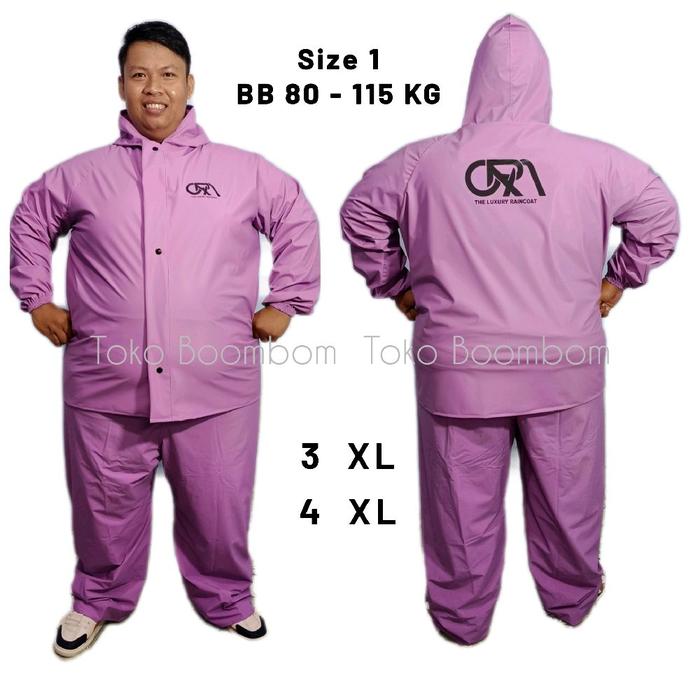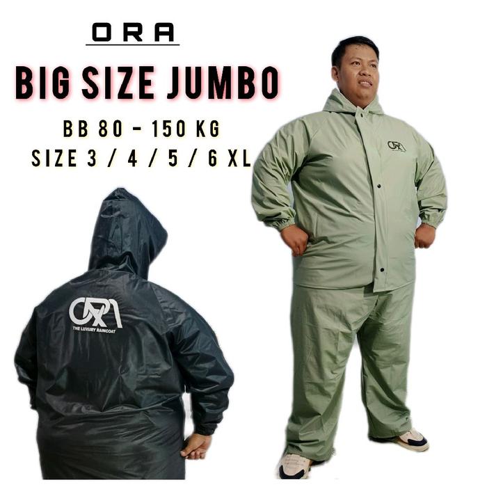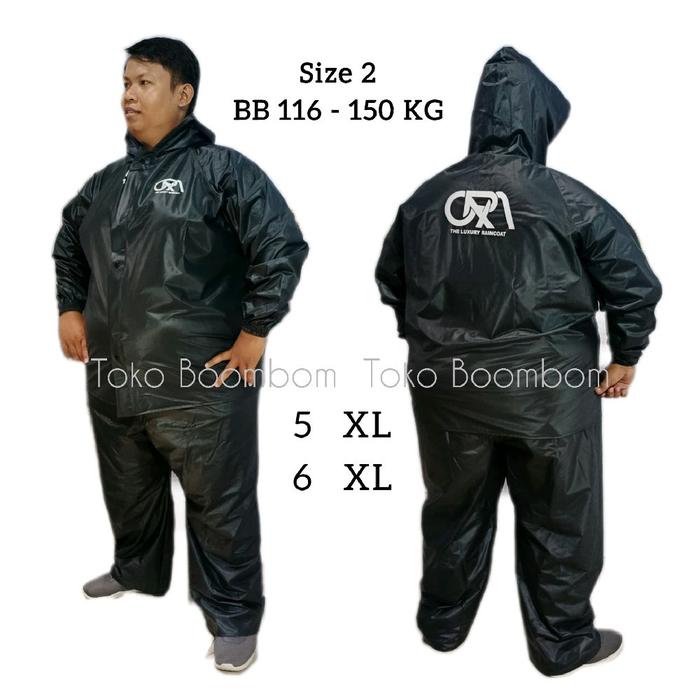 ORA JAS HUJAN JUMBO SETELAN PRIA WANITA PVC KARET TEBAL ELASTIS BIG SIZE 3/4/5/6 XL UNTUK BB 80-150 KG - HITAM JUMBO 1 ( BB 80 - 115 KG )