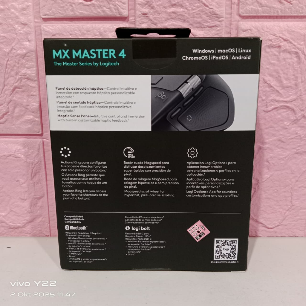 Logitech MX Master 4 Mouse Wireless Ergonomis Bluetooth USB-C - Graphite, Palegrey