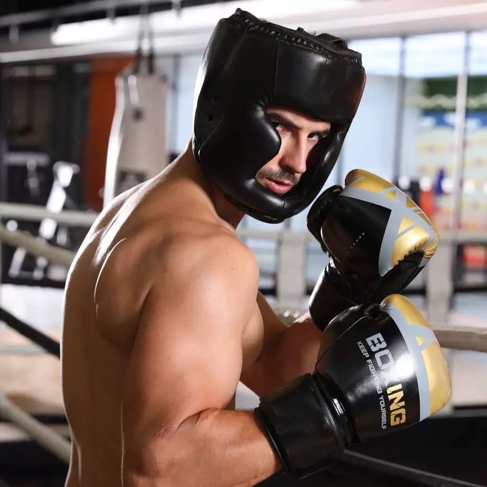 Baru helm tinju kulit Karate Muay Thai Sanda helm latihan dewasa anak-anak seni pelindung kepala Taekwondo Karate helm t