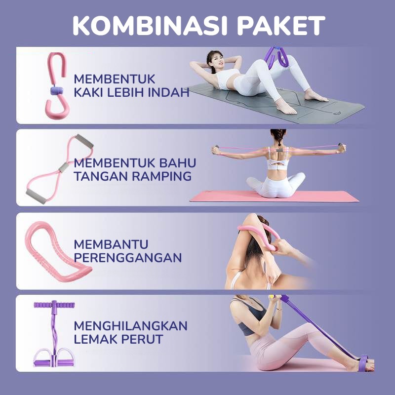 BBAK Set Lengkap Alat Yoga 4-in-1 Tummy Trimmer, Slimming Leg Tool, Yoga Ring, 8-figure Tension Band