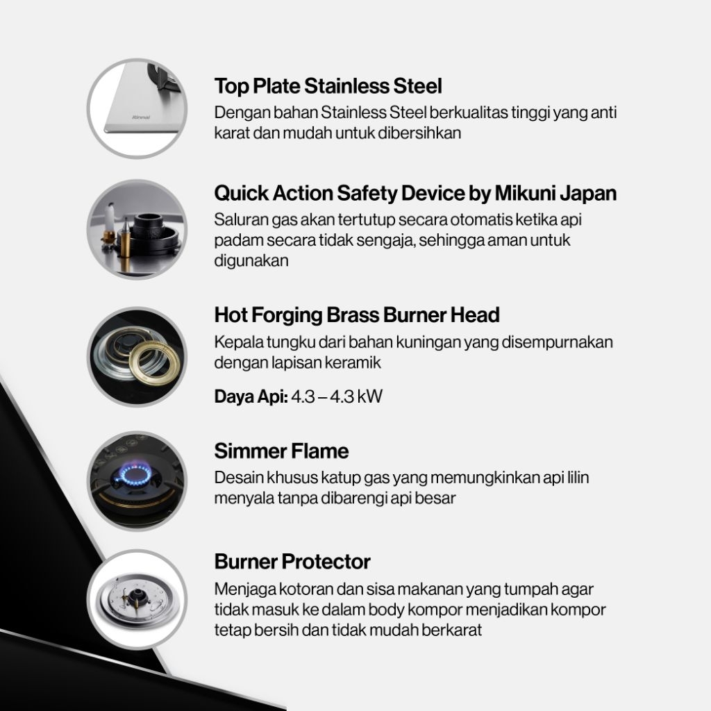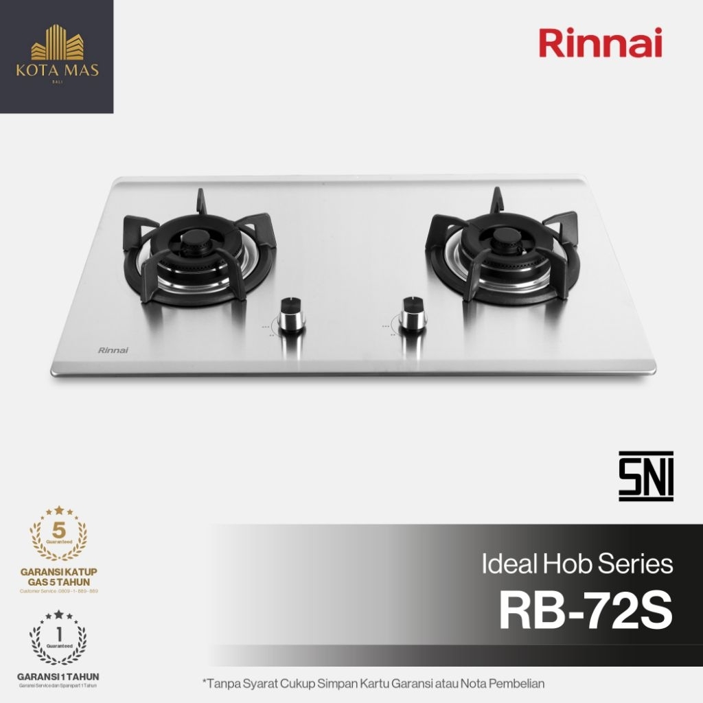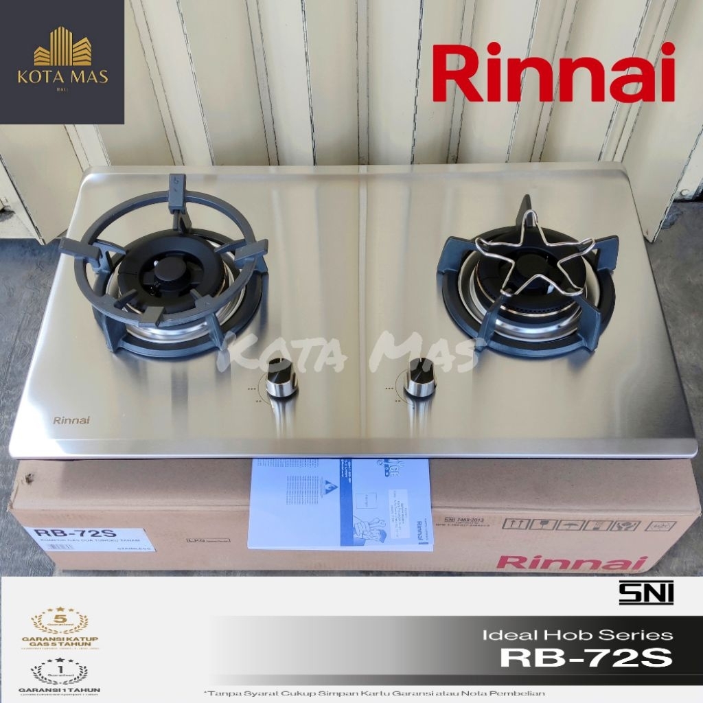 Kompor Tanam Stainless 2 Tungku Rinnai RB72S Brass Burner Gas Stove Safety RB 72 S Api Besar