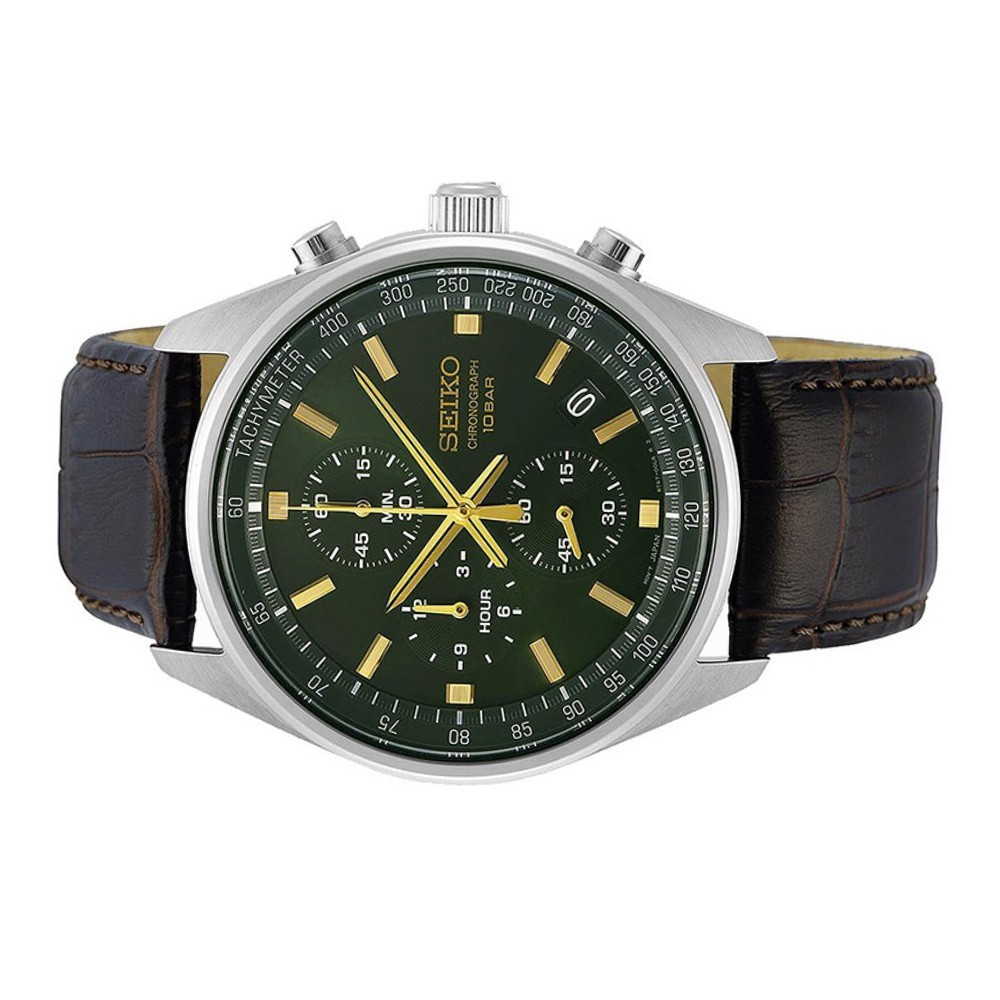 jam tangan pria seiko original Seiko SSB385P1 SSB385 Chronograph Genuine Leather Quartz Anti Air - official store