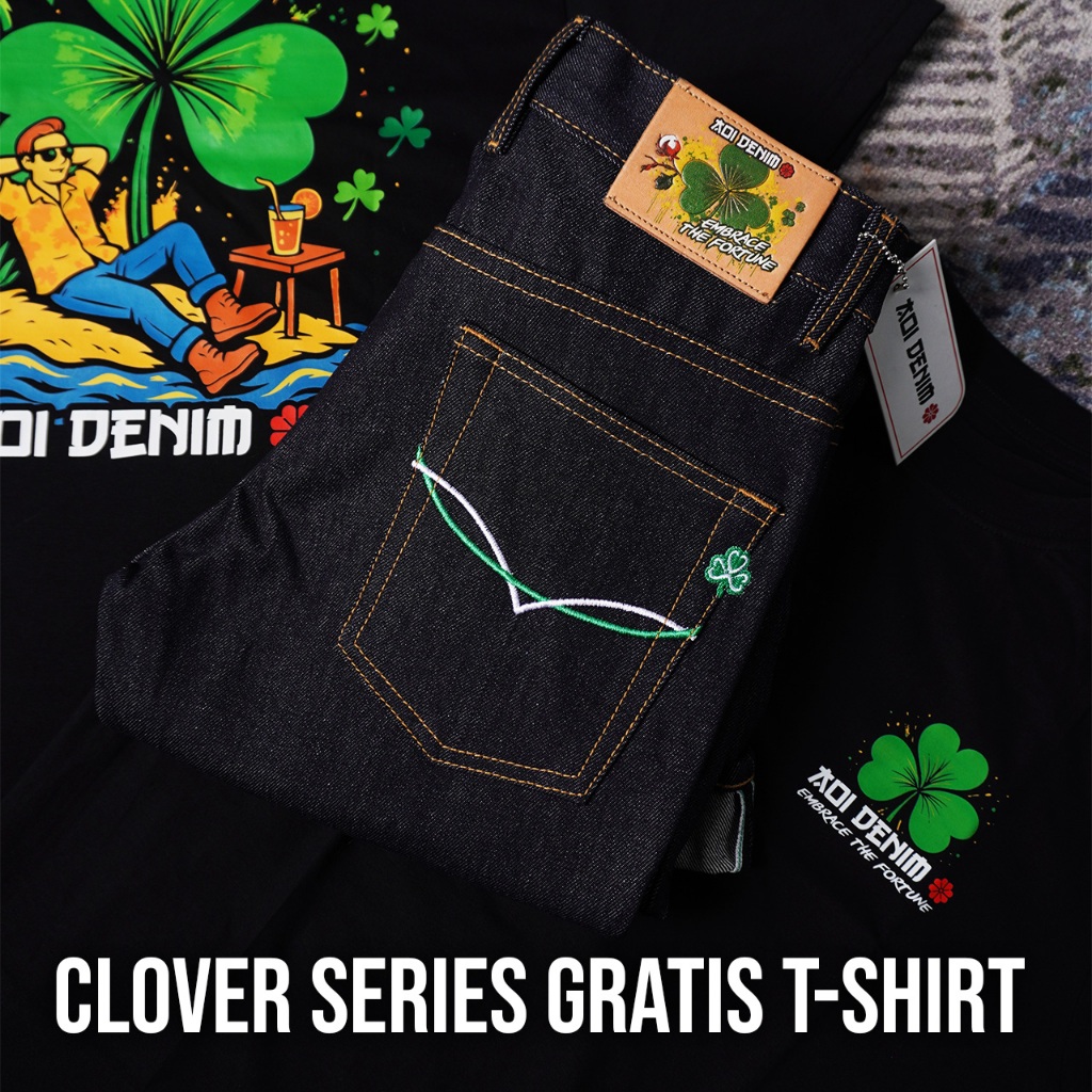 DENIM SELVEDGE AOI DENIM - CLOVER BLACK SERIES SLIM STRAIGHT GRATIS EKSKLUSIF T-SHIRT
