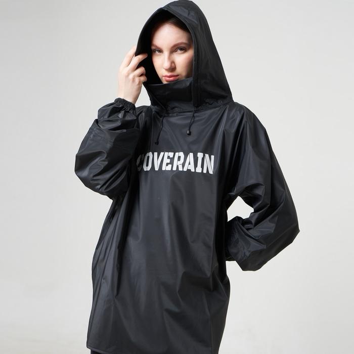 COVERAIN JAS HUJAN HOODIE PREMIUM FULL SEALING PRESS SETELAN PRIA WANITA ANTI REMBES TANPA RESLETING PVC - HITAM, STANDAR