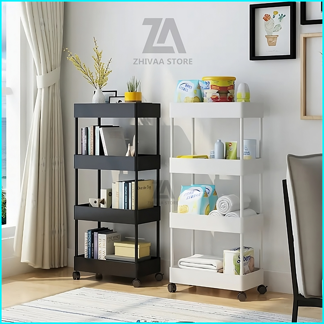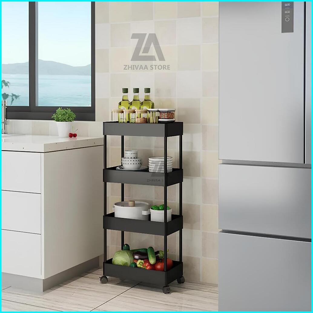 Rak Susun Serbaguna Rak Dapur Rak Kamar Mandi 4 Susun Plastik Dengan Roda Troli