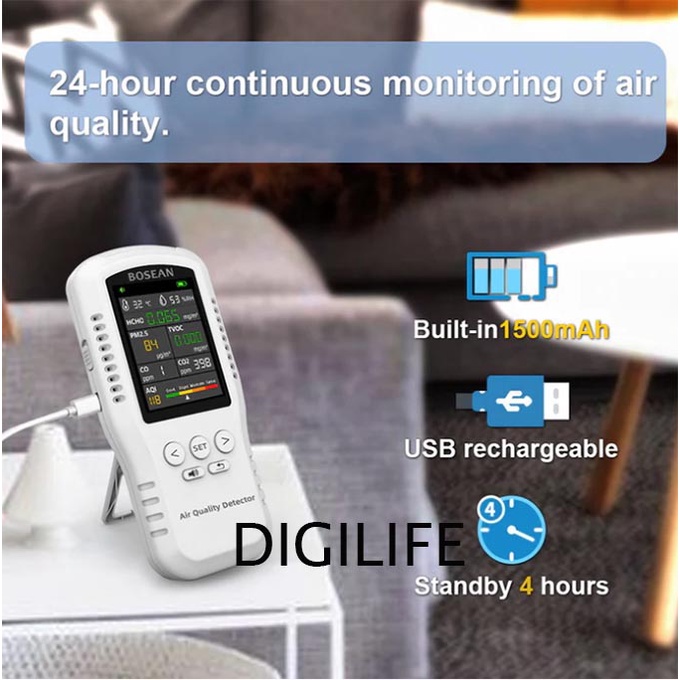 Air Quality Detector Bosean TZ01 CO2 CO PM2.5 HCHO TVOC Humidity Temperature T-Z01 Monitor T Z01 Meter Tester Testing Home