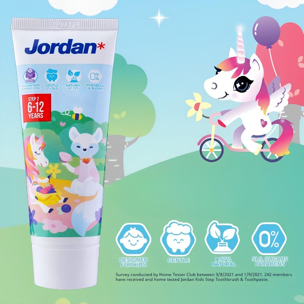 JORDAN Kids Toothpaste Milk Teeth Step 1 (0-5 Years) | Permanent Teeth Step 2 (6-12 Years) - 75g | Pasta / Odol Gigi Ana