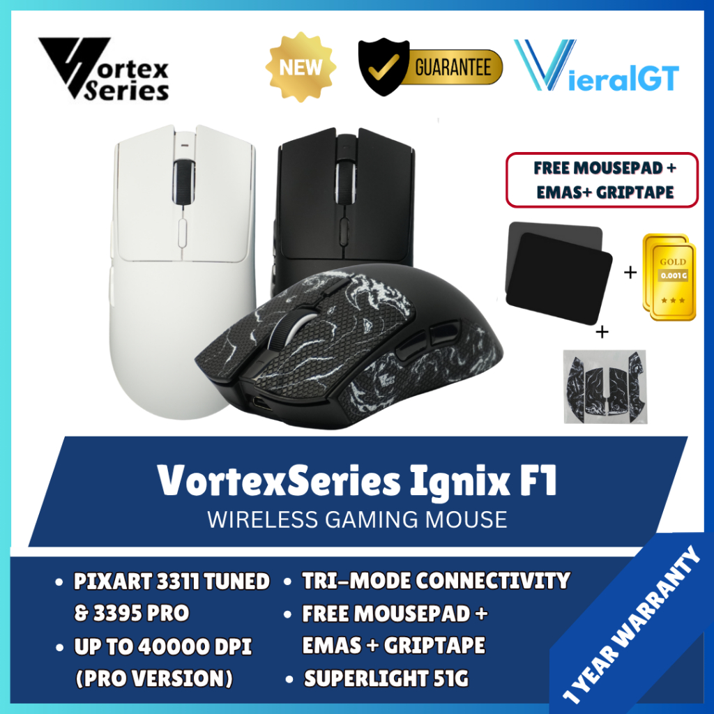 VortexSeries Vortex Ignix F1 / Ignix F1 Pro Mouse Gaming Wireless Triple Connection Lightweight 51G