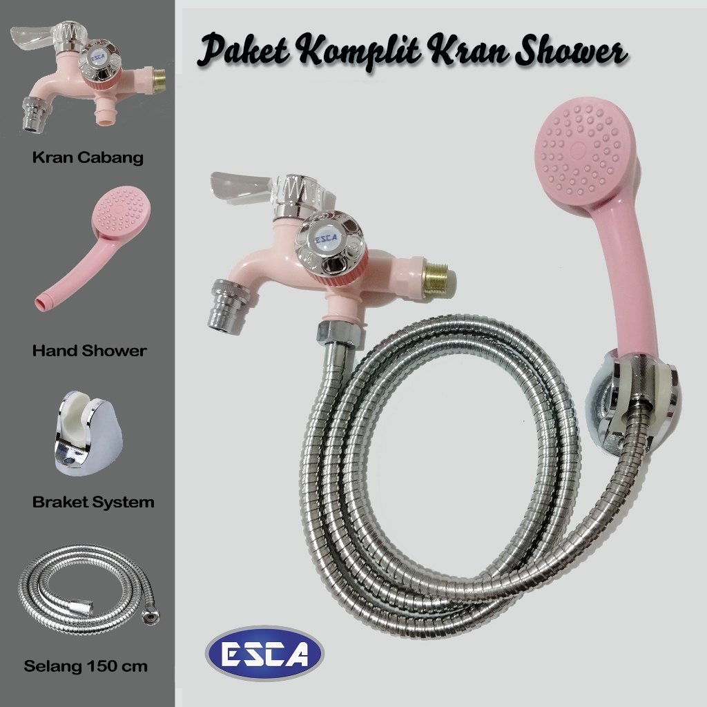 Paket Shower Kamar Mandi dan Kran Shower Cabang - 1/2 Inch ABS Shower Standar Pink ESCA