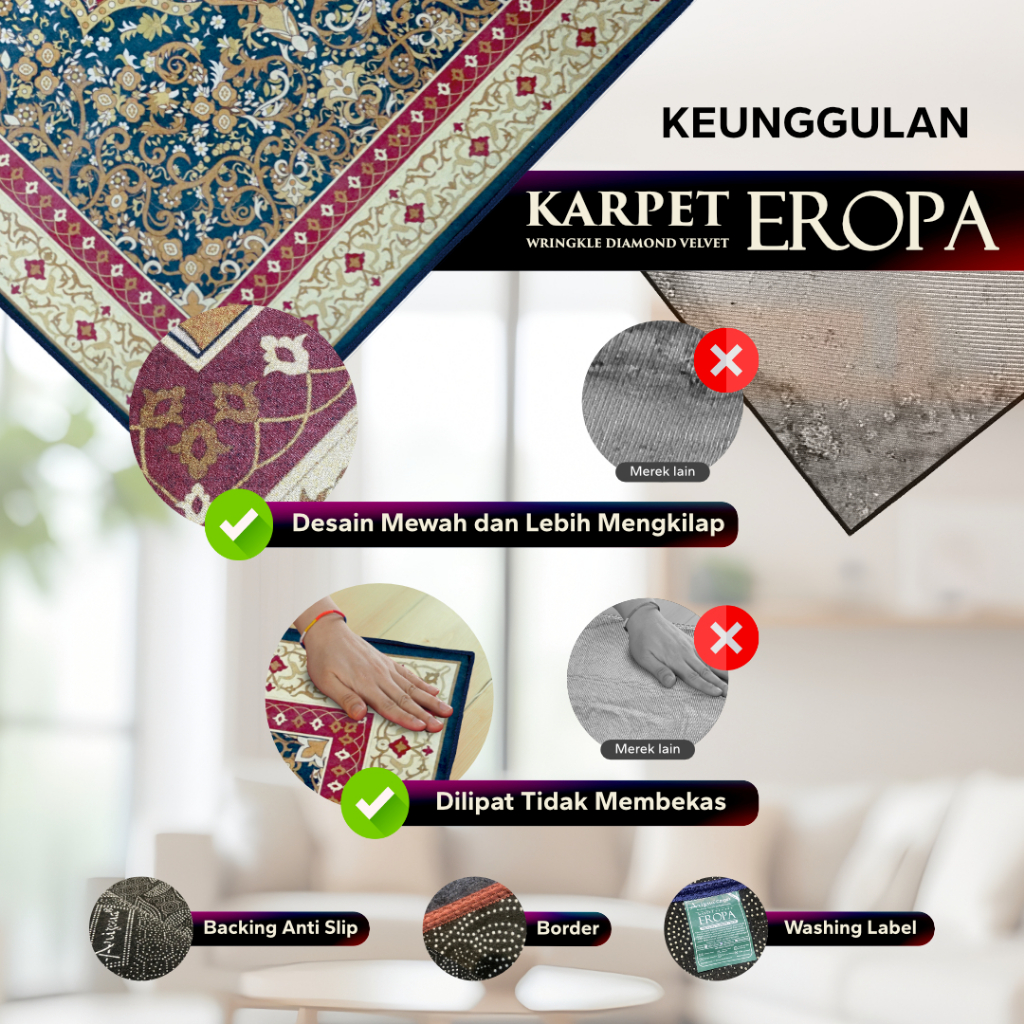 Karpet & Tikar Lantai [Arizona Carpet] 200x300cm Karpet Eropa Motif Mewah Minimalis untuk Ruang Keluarga Anti Licin