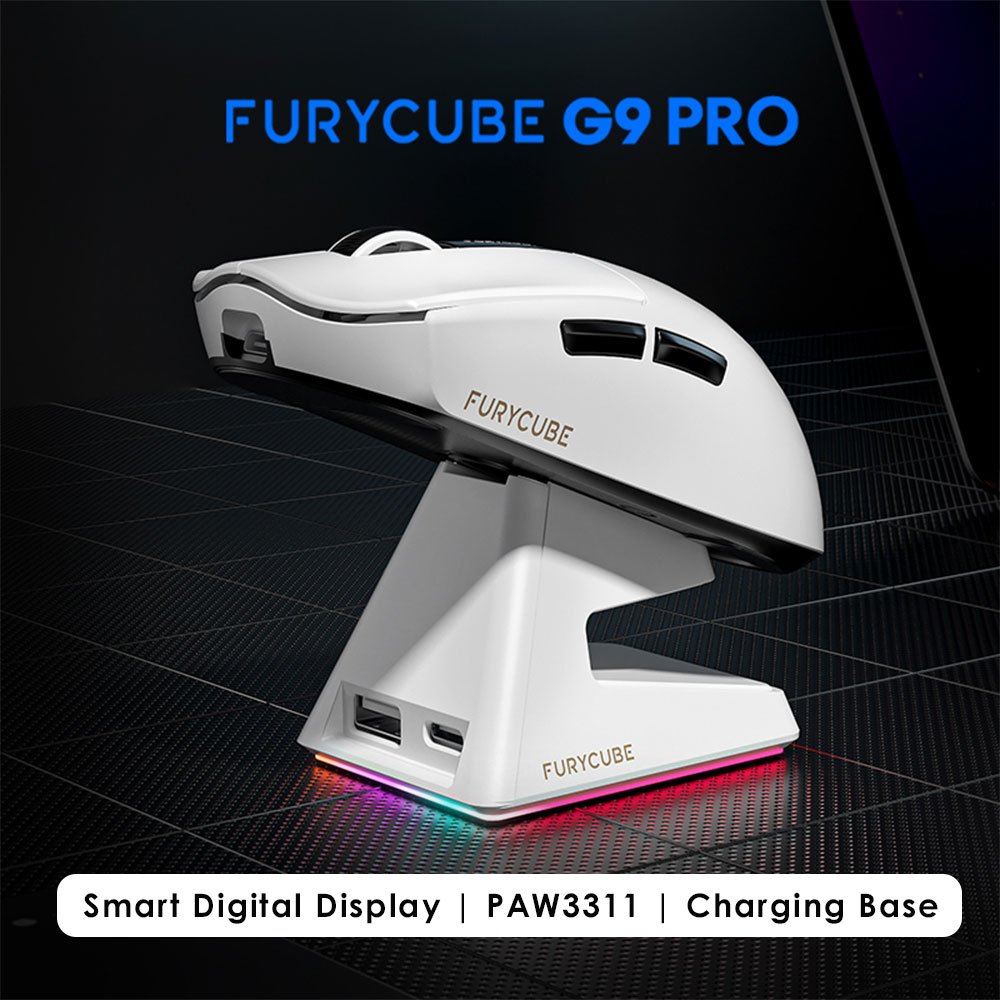 FURYCUBE G9 Gaming Mouse Wireless Bluetooth High DPI PAW3311 RGB Mice Black White Mice With Base