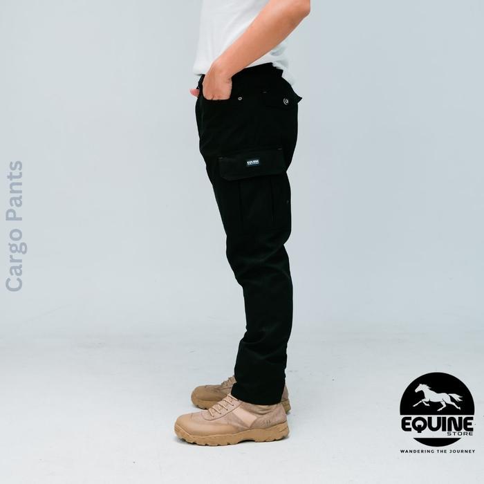 EQUINE STORE LONG CARGO PANTS - CELANA CARGO PANJANG PRIA BAHAN TEBAL - HITAM, 29