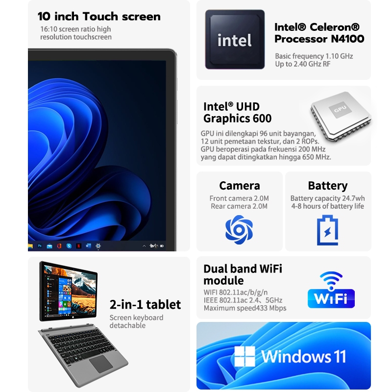 NEXTFUN TABLET PC LAOTOP TOUCH SCREEN WINDOWS 11 DDR4 16GB SSD 1TB FHD IPS INTEL CELERON N4100