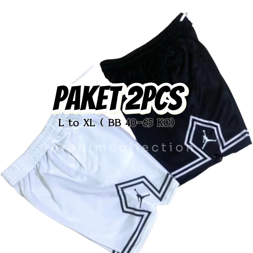 Paket 2 Pcs Celana Pendek Basket Pria Hitam Putih Bahan Lotto Tebal