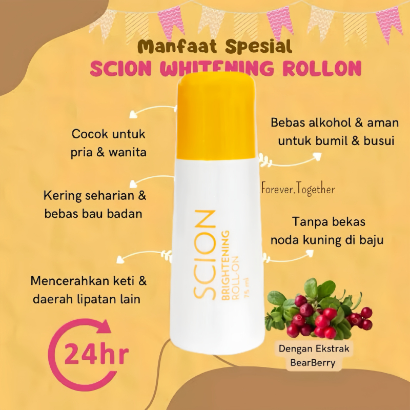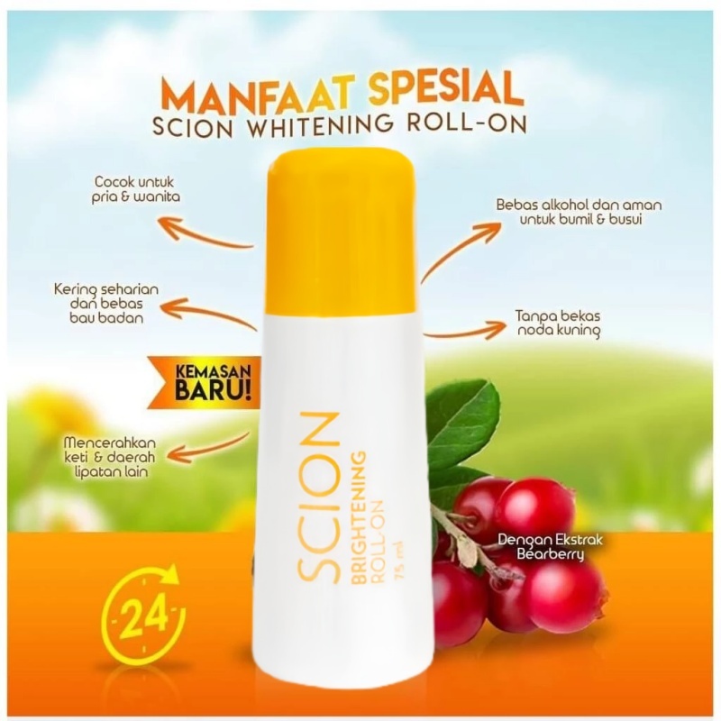 SCION Brightening Deodorant Roll-On 75ml - Pemutih Ketiak Alami | Hilangkan Bau Badan & Noda Hitam | Whitening Roll On P