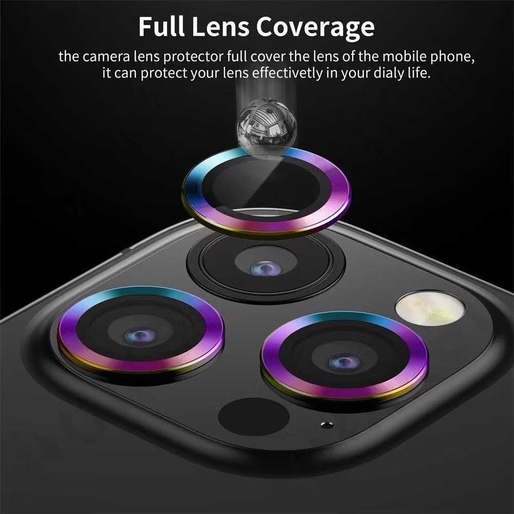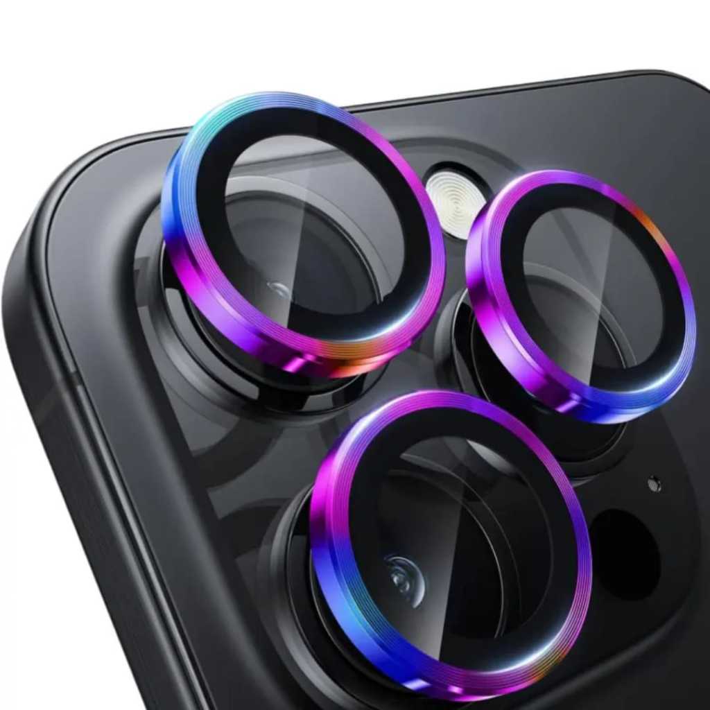 CASEITC Pelindung LENSA CAM ( RAINBOW/ PELANGI ) iPhone 16 15 14 14+ 11 12 13 Pro Max 12 13 Mini Metal Ring Tempered Gla