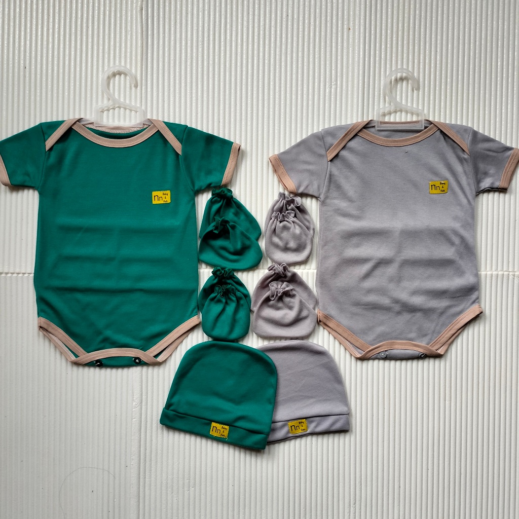 Nn Baby 2 Set Bodysuit Baru Lahir 0-12 Bulan Warna Jumper Newborn Topi Sartaki