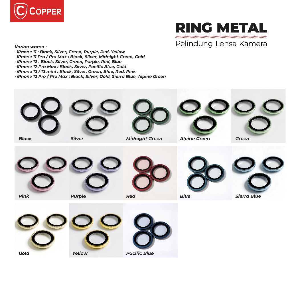 COPPER for iPhone 11/12/13 - Mini/Pro/Max - Ring Metal (Pelindung Lensa Kamera) Anti-Reflective dan Anti-Fog