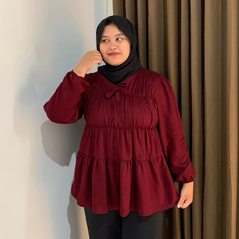 Atasan Wanita Kekinian Blouse Kerut Dada Rubber Rempel Ruffle Series Premium Blouse Wanita Motif Polos Korean Style