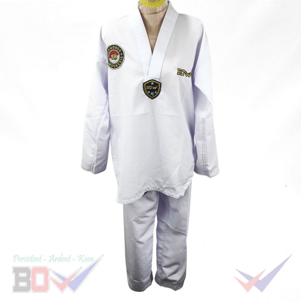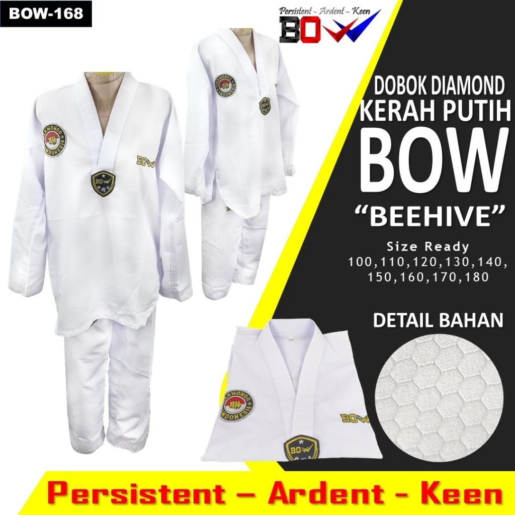 Dobok seragam taekwondo bahan diamond baju kerah putih pakaian pemula