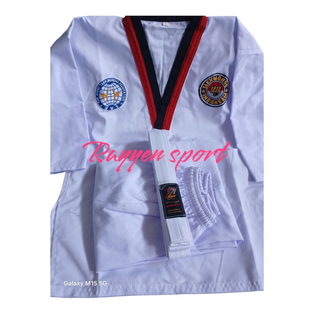 DoBok Taekwondo Kerah Merah Hitam Anak Dan Dewasa