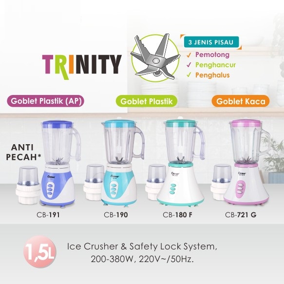 BLENDER COSMOS BLENDER PENGGILING BUMBU KERING KACA TRINITY CB-721 G 1.5 LITER STAINLESS STEEL BLADE DRY MILL TERBARU
