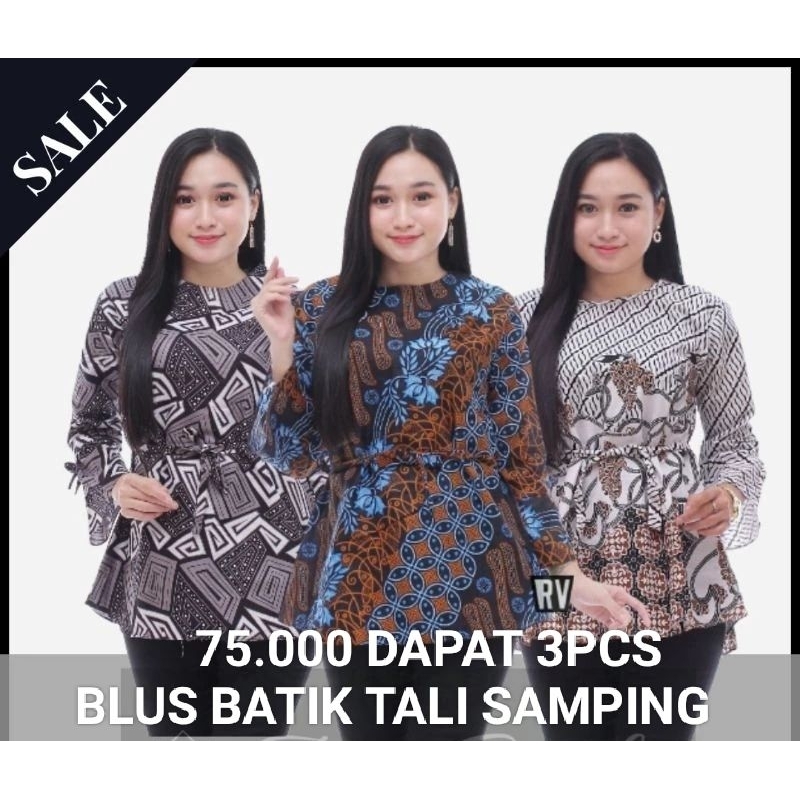 Paket Usaha blus batik 3 pcs cuma 70 ribu lengan pendek murah motif campur