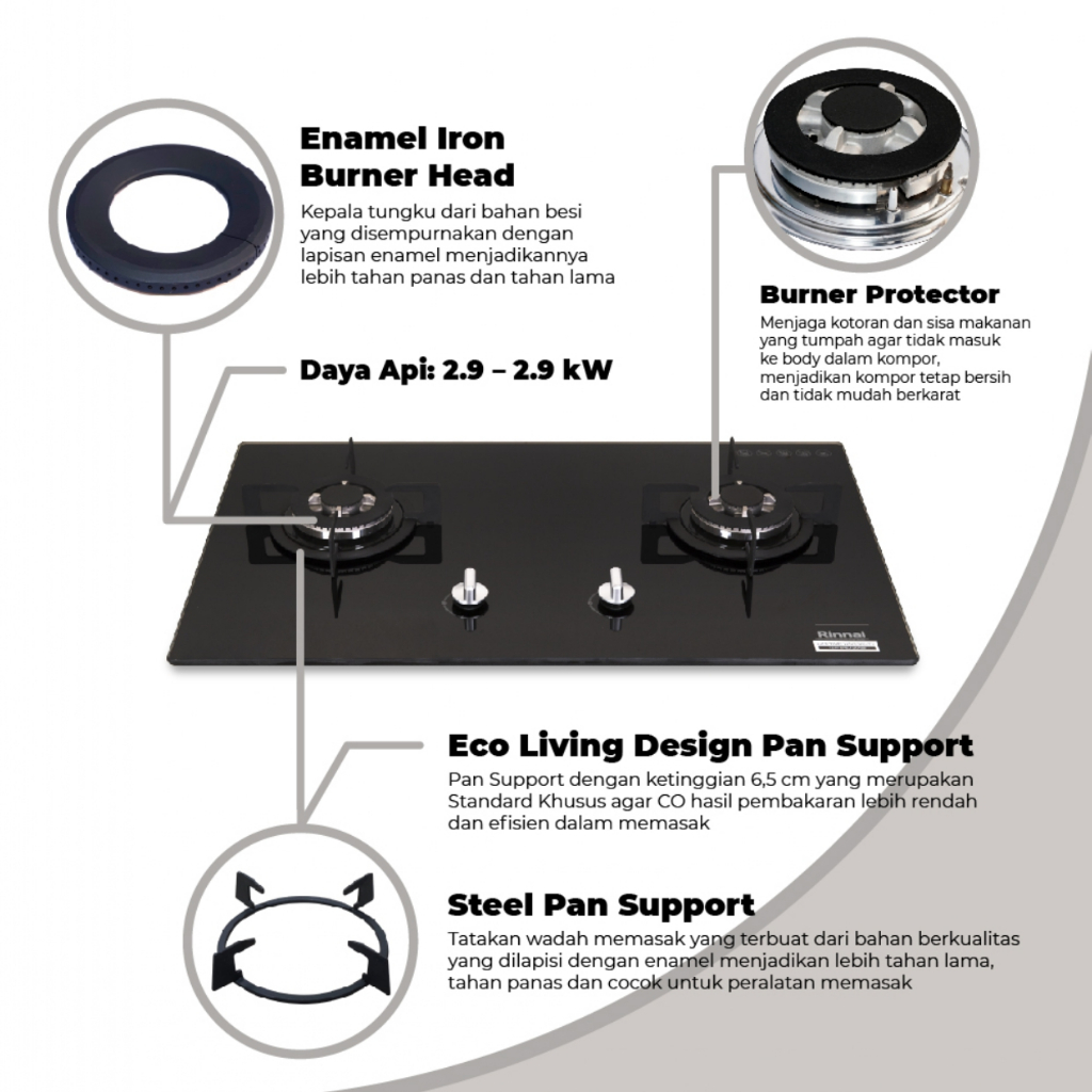 RINNAI Kompor Tanam 2 Tungku RB-712 NGB RB-712N (GB) (KHUSUS MAKASSAR)