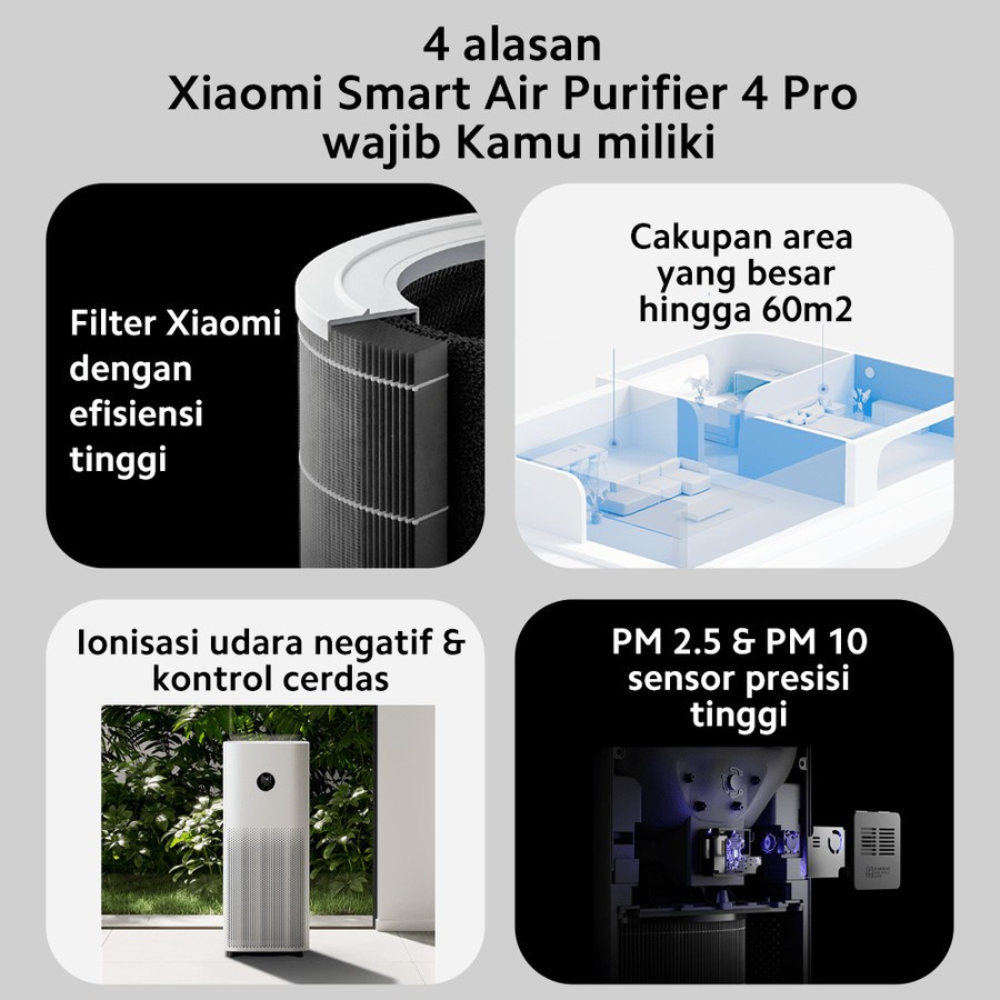 Xiaomi Air Purifier 4 PRO Smart Penyaring Pembersih Udara Ruangan AP 4 Pro Area 500m³/h