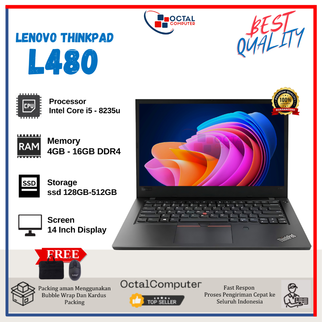 Promo Laptop Lenovo Thinkpad L-Series L380 L480 L490 Core i5/i7 SSD 512GB - Second Murah Bergaransi