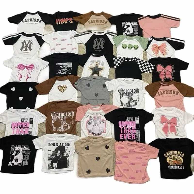 BHO - Paket Hemat Usaha Isi 3 6 10 PT Potong Kaos Crop top Longsleeve Serut Rib Anak Remaja Dewasa Daily Outfit Kekinian