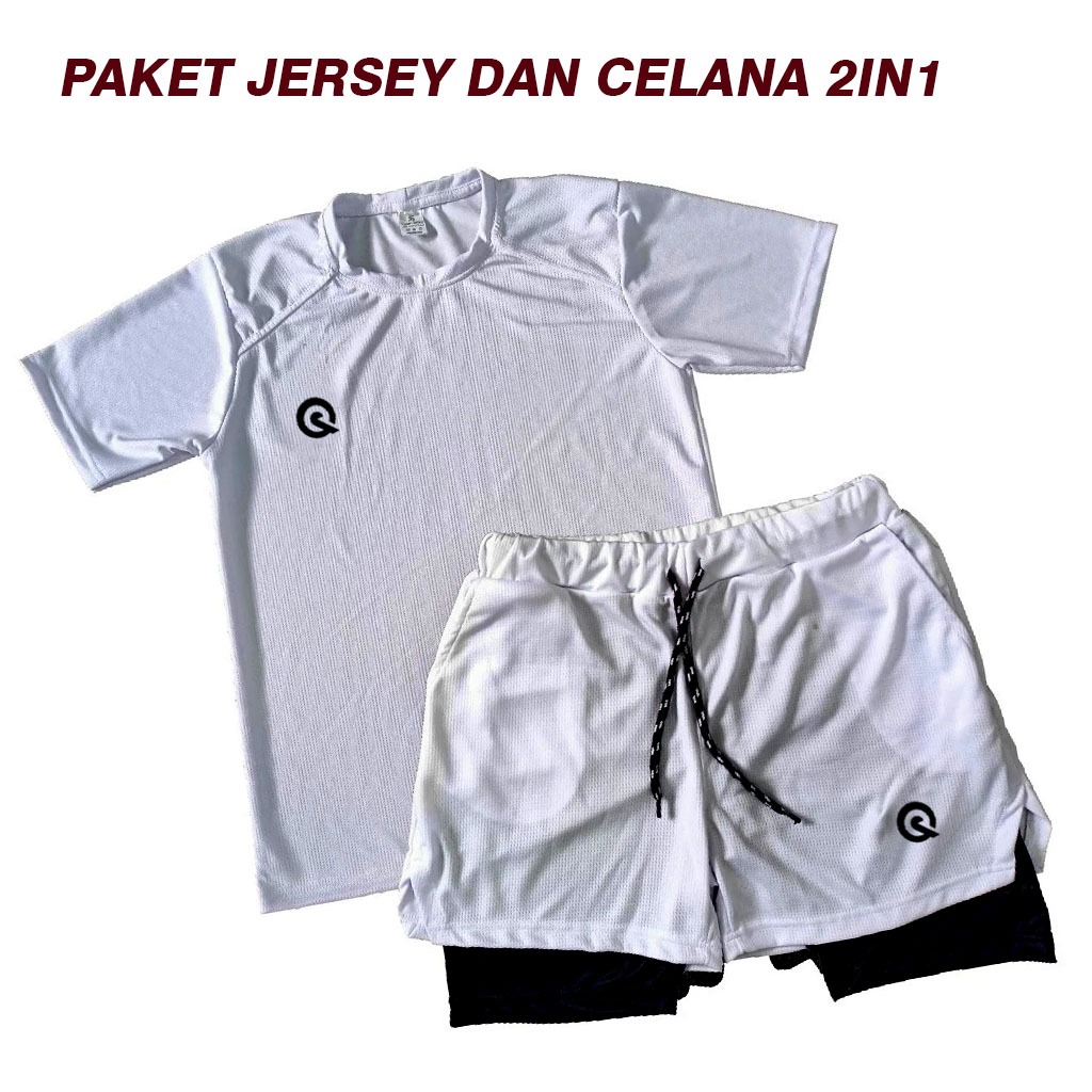Setelan Olahraga Pria Double Layer 1 Set Baju Jersey Kaos Dryfit Celana Pakaian Outdoor Running gym lari Badminton Volly Futsal QIAT Pria Wanita