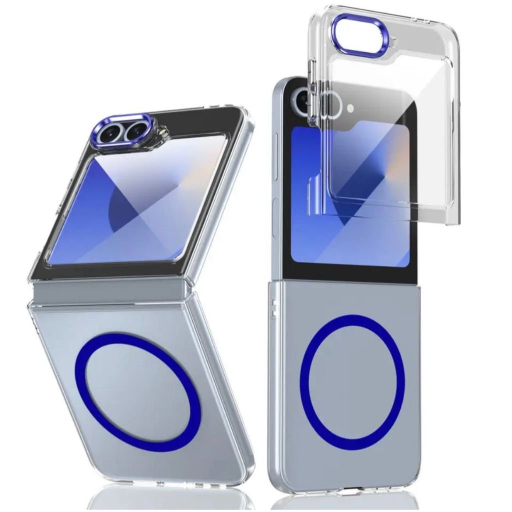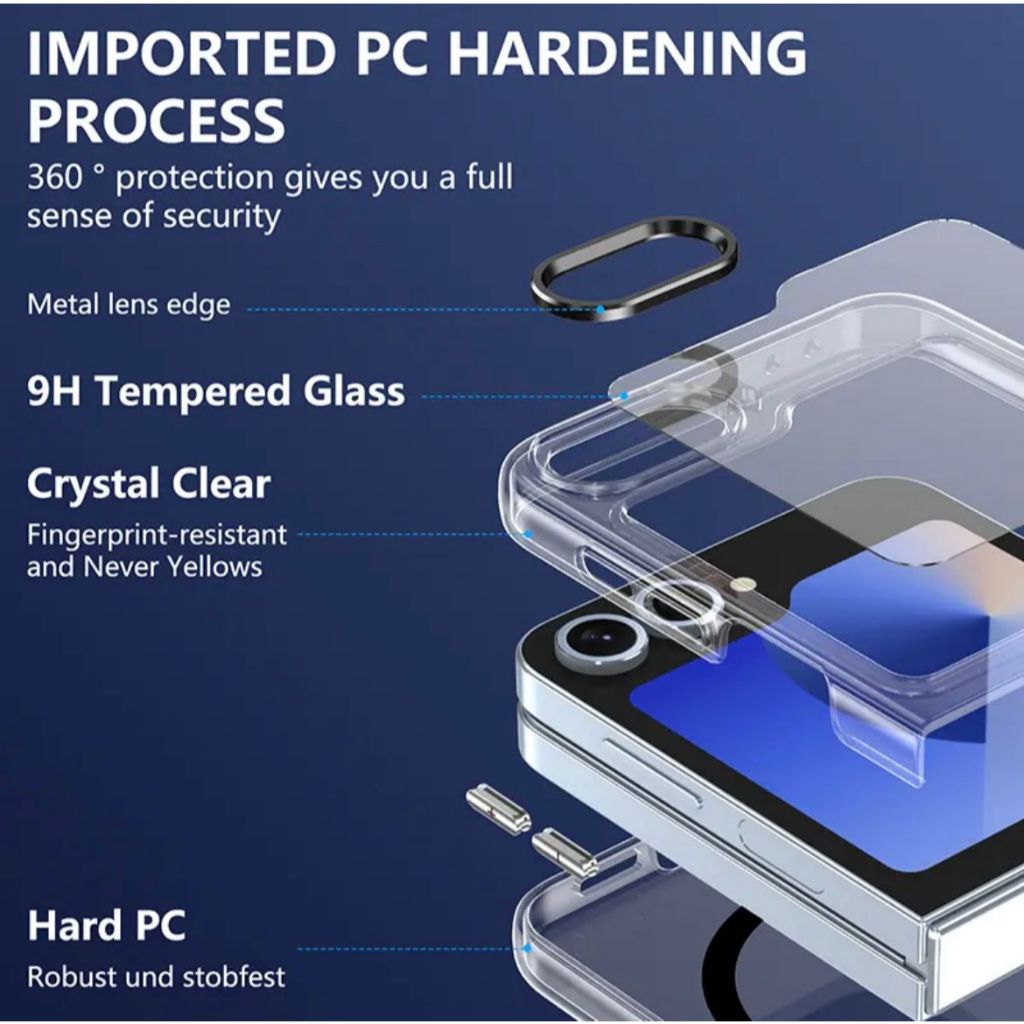 Hard case clear magnetic premium samsung galaxy z flip 3 4 5 6 7 with kaca film depan