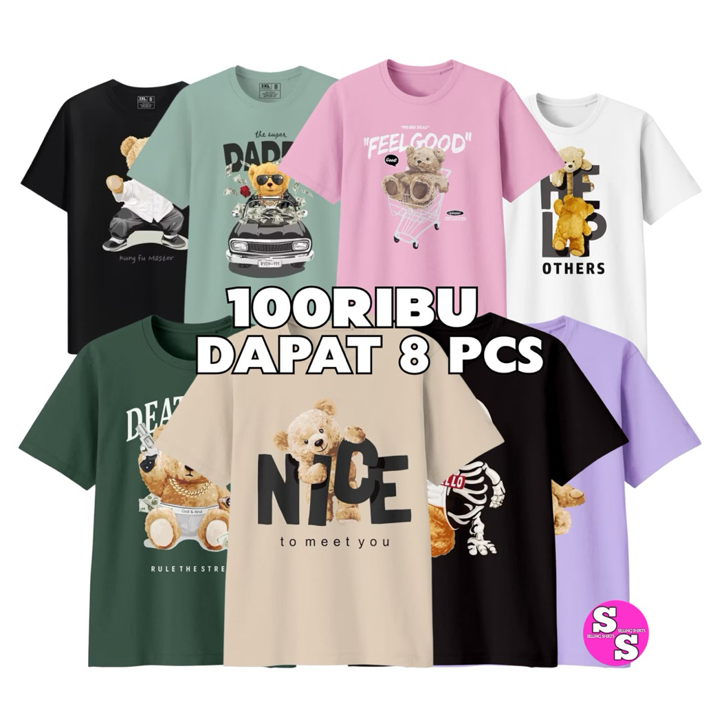 Paket 100RB Dapat 8 PCS Atasan Kaos Wanita Motif Beruang