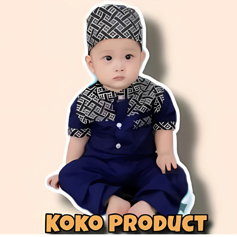 BAJU KOKO ANAK Baju koko anak laki-laki setelan motif batik lengan pendek 1-9 tahun plus peci